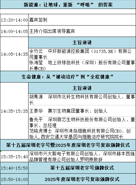 新能源、生命健康交流会、第十五届深圳老字号暨2025年度深圳老字号复审颁牌仪式