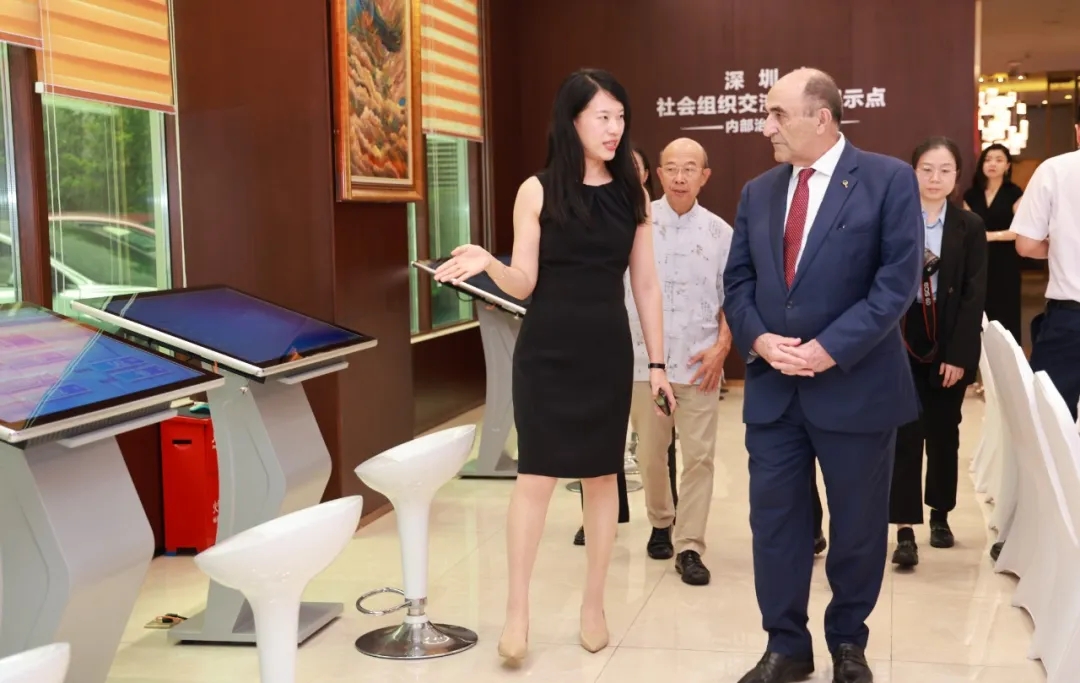 哈利一行到深商会数字展厅、深商报告厅参观,了解商会组织架构、成员情况和活动场地等,哈利指此行所了解的情况让他印象深刻。