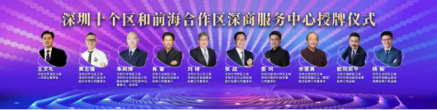 会议现场举行的多项仪式,为深商未来发展注入实际动能。在深圳11个区及前海合作区深商服务中心授牌仪式上,李东生为各区服务中心代表颁发牌匾。深商会南山区主席、达实智能董事长刘磅作为代表发言时承诺:“区级服务中心将成为政企协同的关键枢纽,把精准服务送到企业‘家门口’,打通深商服务最后一公里。”