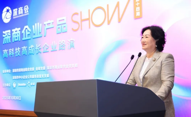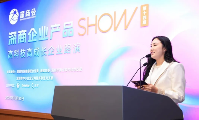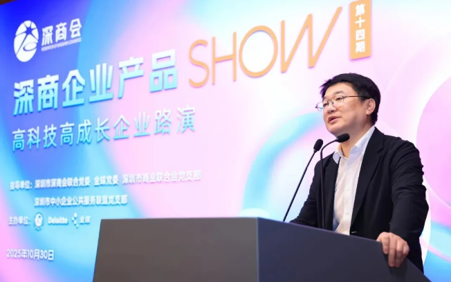 10月30日,第14期深商企业产品SHOW--高科技高成长专场活动在深商报告厅举行,鹿明机器人、克里特控股、光羿科技、新合生物、珈钠能源、泰坦国际、思坦科技7家企业上台展示, 德勤中国审计与鉴证合伙人施安迪、深圳银联党委书记郑景飞、东方富海合伙人高剑光、金蝶中国深圳行业解决方案高级顾问王礼康作为赋能嘉宾出席,深商会联合党委书记、常务会长林慧,金蝶中国助理总裁、深圳分公司总经理颜全铨以及远信储能、天顿数据、平安银行深圳分行等180位企业代表参与,共同聚焦高科技领域的创新成果与高成长企业的发展路径,为深商生态注入新的活力与动能。