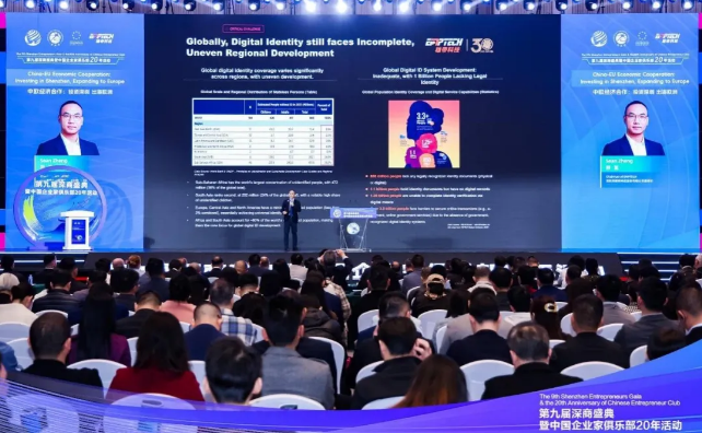 1月11日,第九届全球深商盛典“中欧经济合作论坛”,聚焦“投资深圳,出海欧洲”主题,围绕数字经济、新能源等产业探讨双向合作路径。深圳市雄帝科技股份有限公司(股票代码:300546)董事长郑嵩发表《数字身份奠基数字经济》主题演讲,系统阐述数字身份在全球数字化转型中的核心作用,分享雄帝科技三十年技术积淀与全球实践,为中欧数字合作贡献深圳智慧。