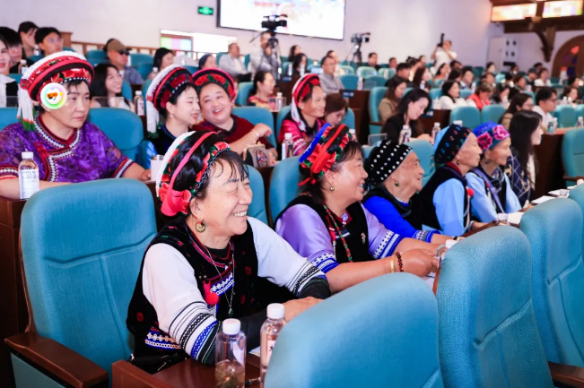 深圳市人大常委、深商会联合党委书记林慧,在现场深情分享了她与双廊白族阿婆的邂逅之旅,借这段跨越山海的缘分,深度阐释了原乡振兴的时代内涵与实践路径,尽显思想高度与情感深度。“原乡不是地理意义上的故土,更是中国人心底最柔软的精神根脉,是刻在血脉里的乡愁寄托,是乡村振兴的灵魂所在。”她开篇点题,结合自身四次上火山的经历,将所见所感升华为对原乡振兴的深度思考与躬身实践,更引用自身感悟直言:“沈老师的扶贫是真正意义上的精准扶贫,更是原乡振兴的生动实践--他不是简单给予金钱帮扶,而是用艺术唤醒阿婆们对故土的热爱,赋予她们生存的能力与做人的尊严,让原乡的文化基因得以延续,让乡村不再是沉寂的故土,而是有温度、有灵魂、有希望的家园。”
