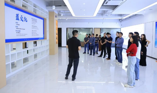 活动伊始,参会嘉宾一行走进蓝凌智能展厅,开启了一场沉浸式的数智化创新之旅。