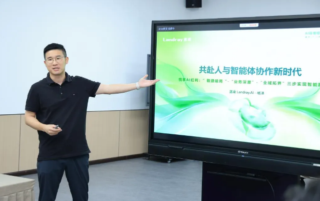随后,深圳市蓝凌智能副总裁杨泽带来《共赴人与智能体协作新时代》主题分享。作为深耕数智化领域的行业专家,杨泽从当前企业AI落地的共性痛点切入,深度拆解了AI时代下,组织与个人的双重进化逻辑,系统分享了蓝凌在“人+Agent”协同模式下的全场景落地实践。针对企业普遍困惑的AI 怎么落地、怎么见成效问题,杨泽提出了“快 - 深 - 广”三步转型方法论,这也是蓝凌服务数百家企业总结出的可复制路径。